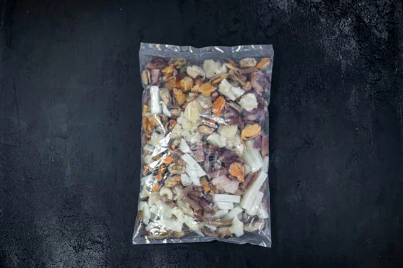 Кальмар, мидии, осьминоги, креветки - смешиваются и замороживаются в ароматный морской коктейль. Тончайшая гармония нежных вкусов идеальна для салатов, ризотто, паэльи... для любых кулинарных фантазий!